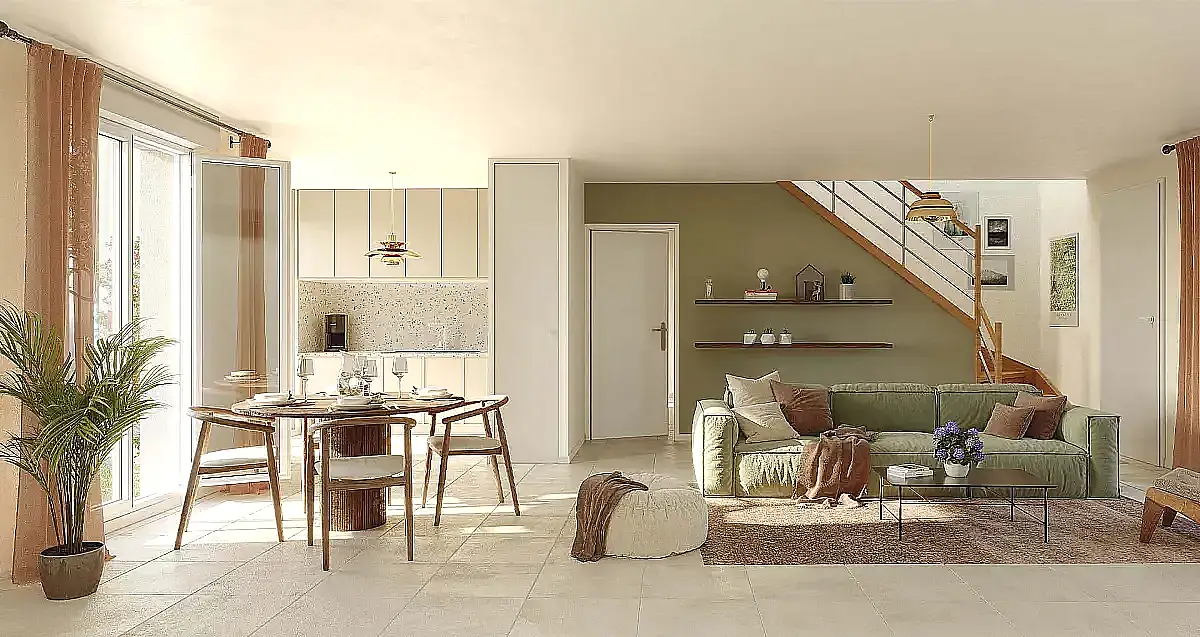 Un soin particulier a été apporté aux prestations, avec un chauffage collectif hybride pour les appartements et des pompes à chaleur individuelles pour les maisons, garantissant confort et performance énergétique au quotidien.