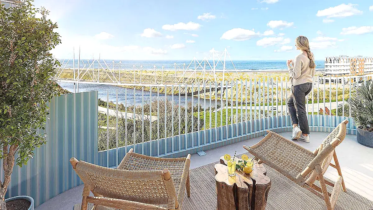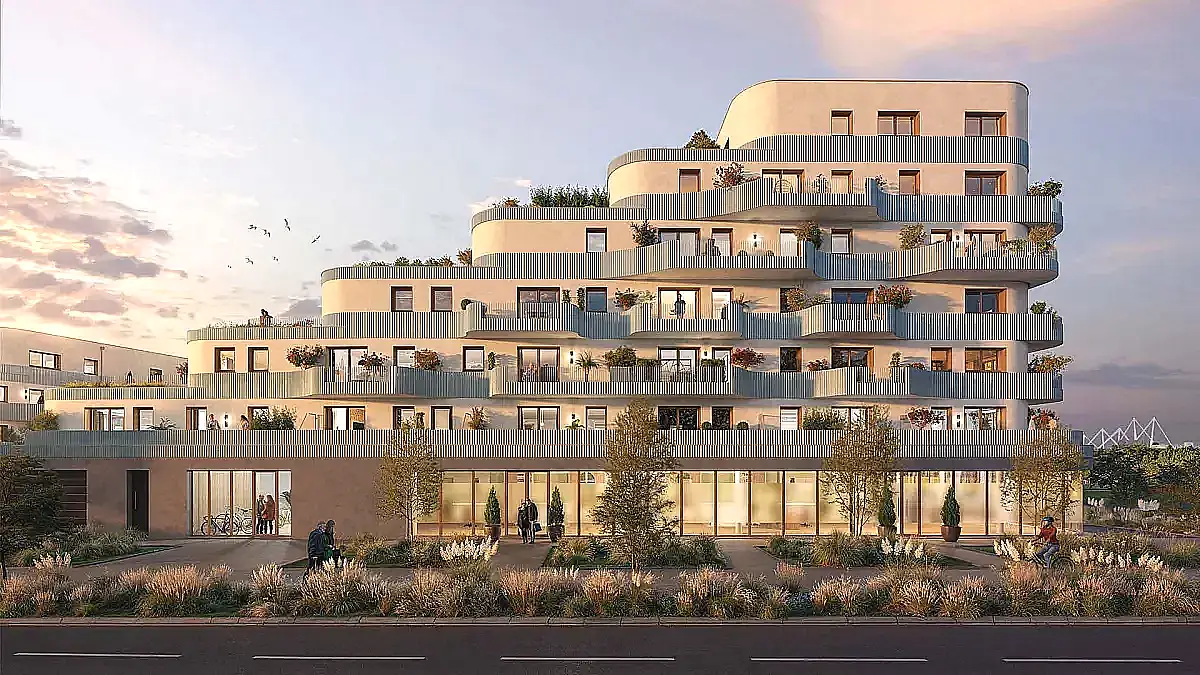 Du bleu cristallin des journées estivales au bleu acier des petits matins, laissez-vous envoûter par les reflets poétiques de la mer du Nord, en résidant à deux pas du futur quartier de la Pointe des Alliés et de la plage de Malo-les-Bains. Dans un quartier en plein essor à 6 min* à vélo du centre-ville grâce aux pites cyclables du « Fil Vert », cette nouvelle résidence écoresponsable et verdoyante se distingue par son architecture élégante avec des terrasses en gradins. Conçue pour offrir à chaque appartement une luminosité optimale et des vues dégagées, elle offre quelques belles perspectives sur la mer.